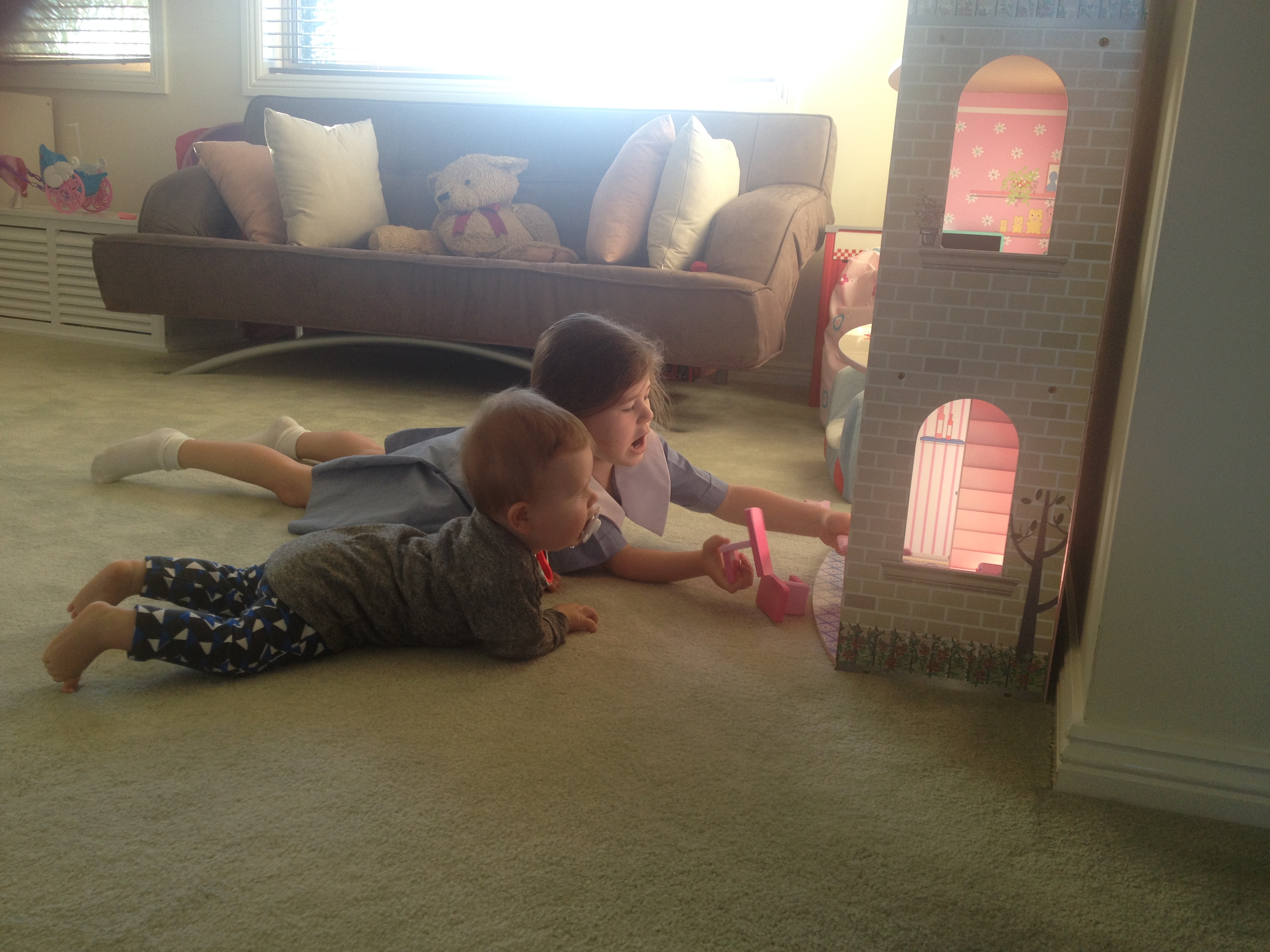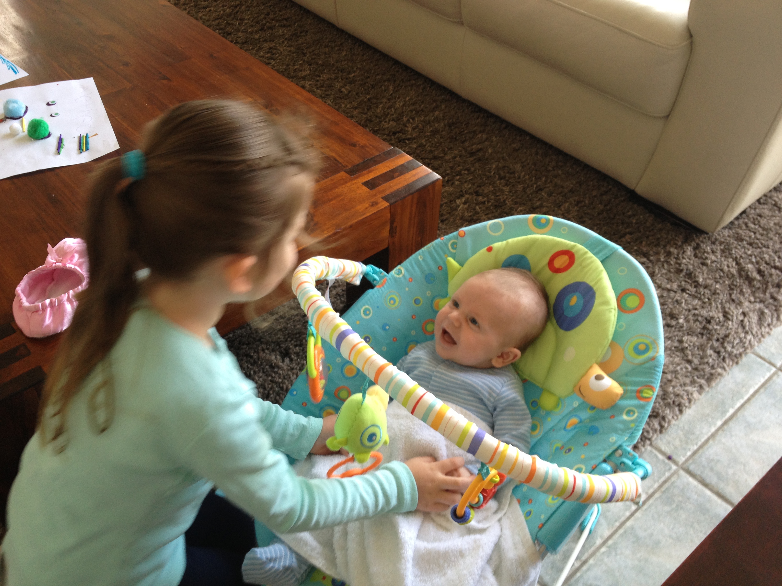 Will is the most gorgeous little boy, he really is, he charms everyone who meets him, he has a gorgeous smile that melts anyone, and the cuddles that he gives me have to be seen to be believed, he cuddles in with everything that he is, he places both arms right around my neck and gently caresses my hair, often while gently blowing raspberries through his dummy. He LOVES his big sister, I still breastfeed him in my bed in the morning, and as soon as he is finished he sits up looks straight at my bedroom door and either starts to giggle or blows raspberries cause he knows that his big sister is about to run in the room and shower him with all her love (she’s not allowed in until he finishes his milk because otherwise he wouldn’t drink any, he would be too excited to see her). Alethea is still infatuated with Will, her love for him is stronger than I could have ever imagined, she is protective of him and so far in the year that we have had him she has shown no signs of jealousy at all, even though he takes up a lot of our time, I am so proud of her, she had us purely to herself for 4.5years and she is sharing us with Will, with no hesitation and is doing a damn good job at it too.